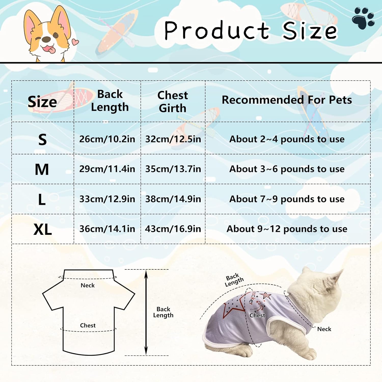【4 Sizes in Available】The dog T-Shirts are designed for small medium dogs. S: Back length is 10.2″, chest girth is 12.6″. M: Back Length is 11.4″, Chest Girth is 13.8″. L: Body Length is 13″, Chest Girth is 15″. XL: Body Length is 14.2″, Chest Girth is 17″. Please compare your pets’ measurements with the size chart to choose the proper size.