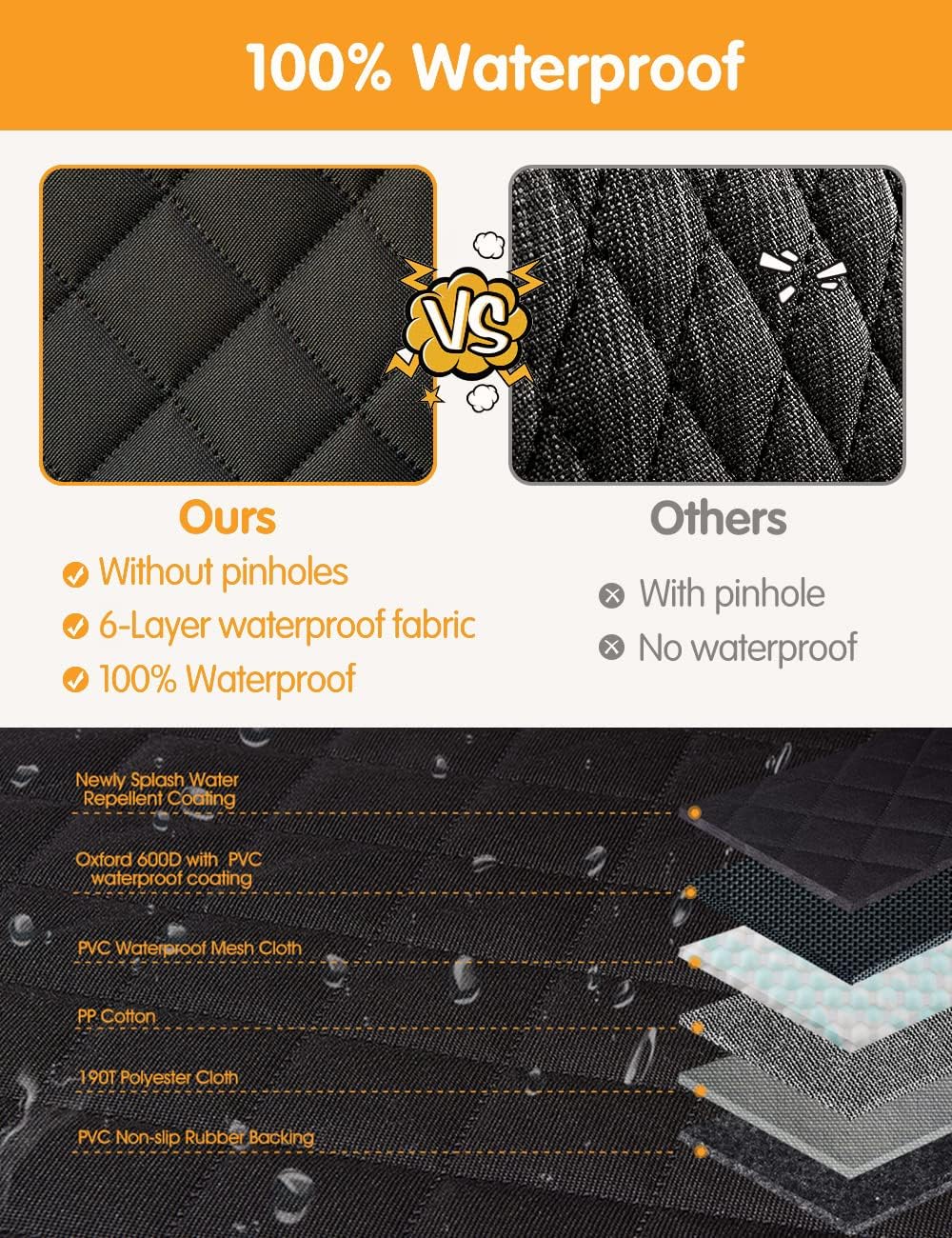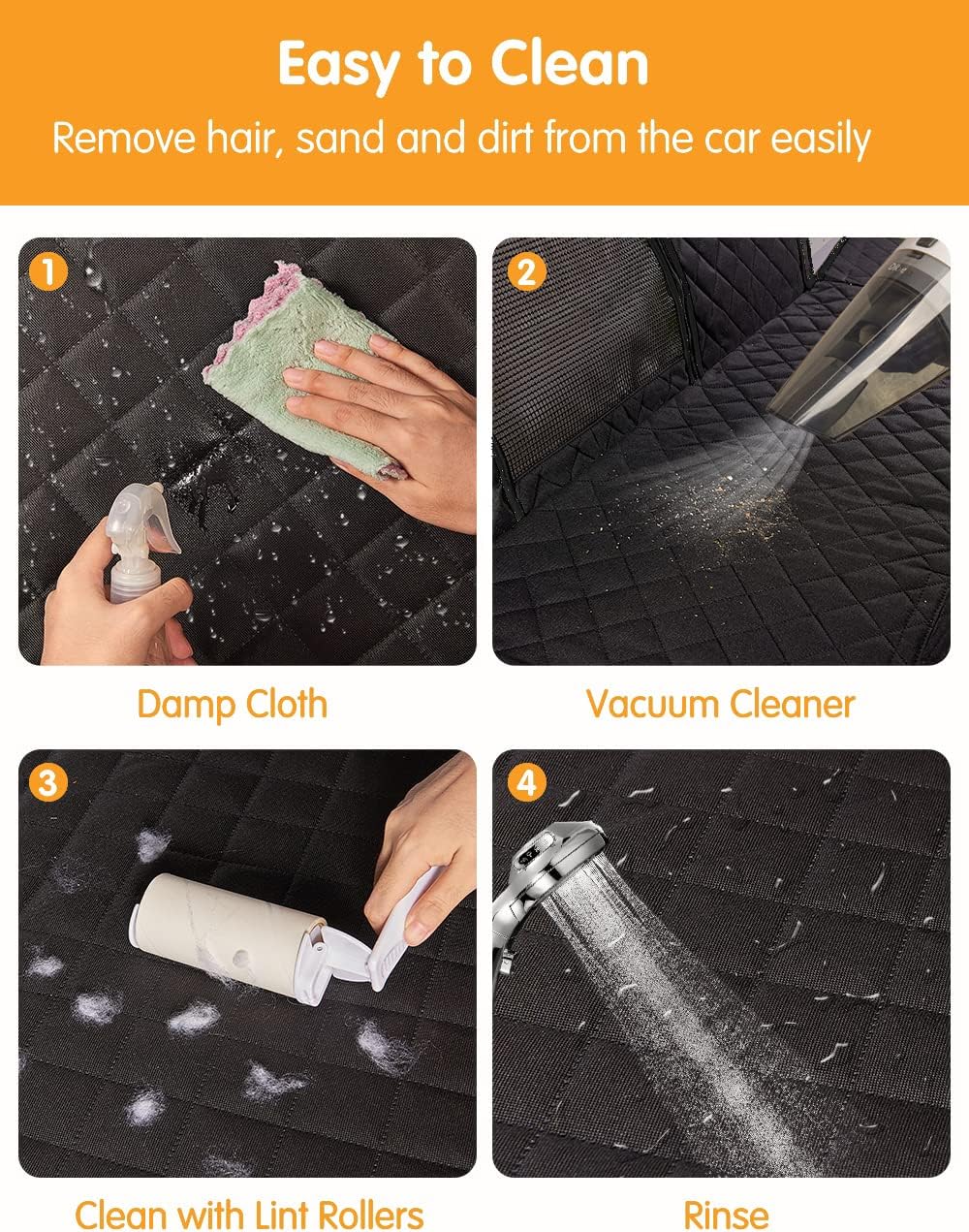 【100% Waterproof & Easy Clean Materials】Using unique hot pressing process and new PVC waterproof material to achieve 100% waterproof and impermeable. Protecting your car in all directions from scratch, mud, dirt, and hair, your car backseat will always remain dry and clean. If your pet gets the pet liner dirty, just shake dirt and hair off them or damp cloth or vacuum it and it will be new again in seconds!