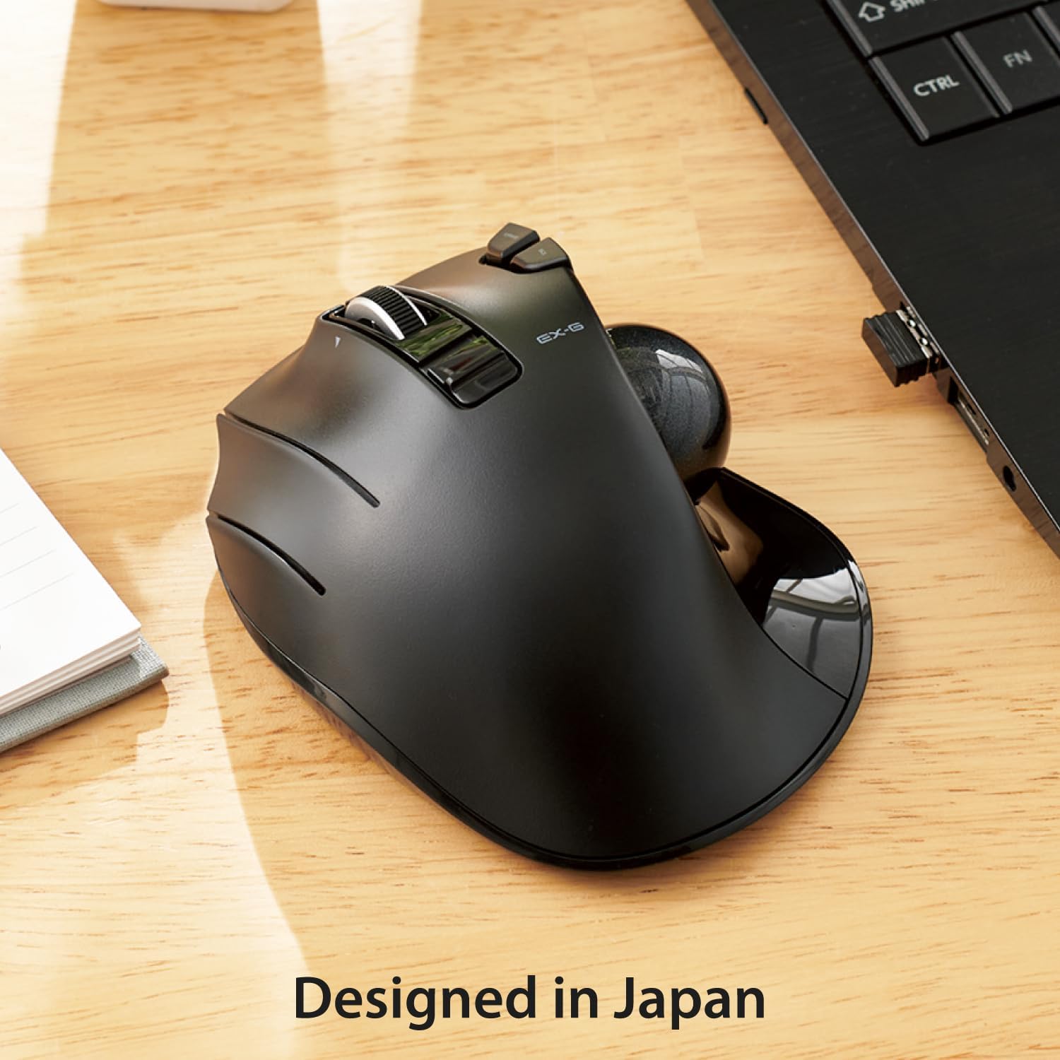 ELECOM EX-G Left Handed Trackball Mouse, 2.4 GHz USB Wireless, Ergonomic, Thumb Control, Tracking Roller Ball, 6 Programmable Buttons, Tilt Scroll