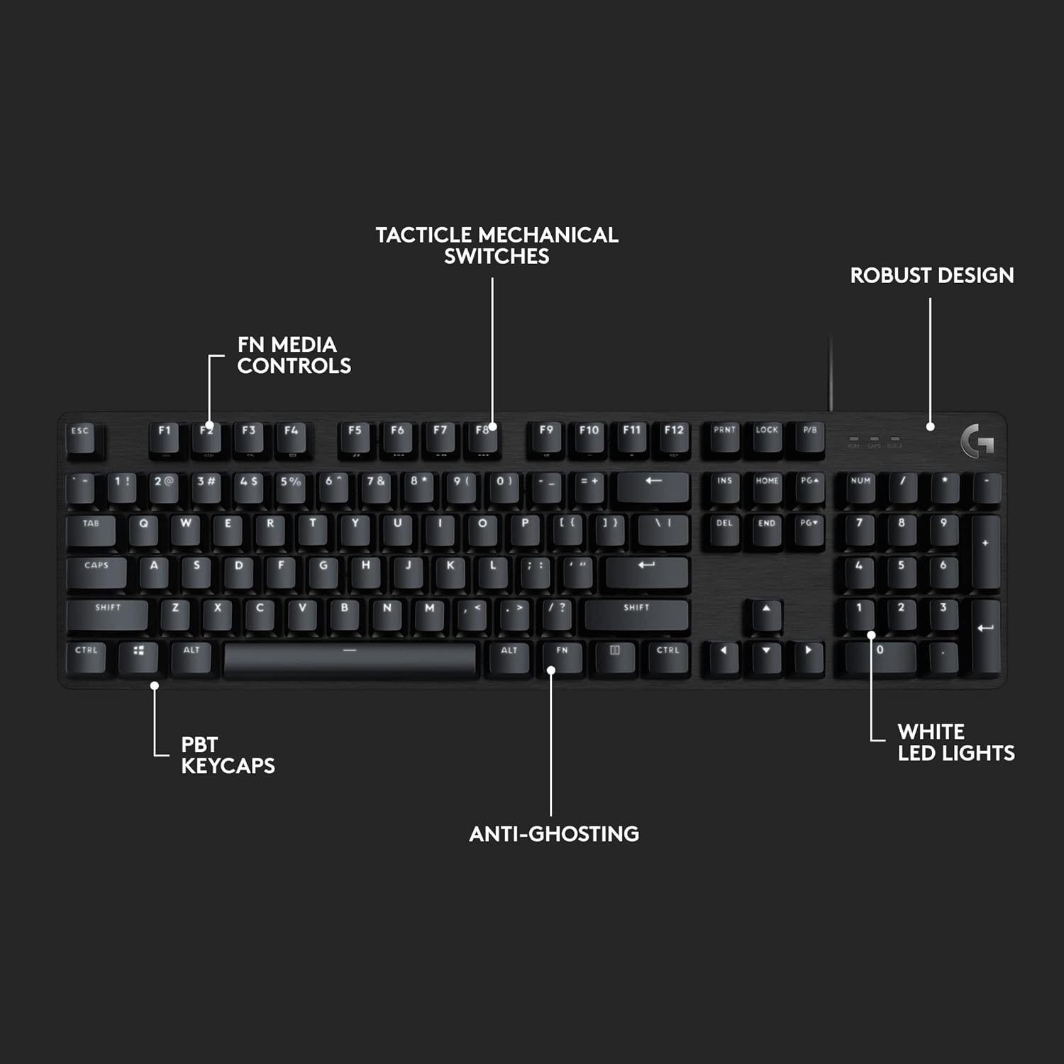 Upgrade your gameplay experience with the Logitech G413 SE Full-Size Mechanical Gaming Keyboard. It delivers a gaming-grade mechanical switch experience. It’s designed to help serious players perform at a higher level and push themselves even further. The G413 SE features tactile mechanical switches; PBT keycaps, 6-key rollover anti-ghosting performance; a black-brushed aluminum top case with white LED lighting; 12 function key media controls; and reliable USB-corded technology. A compact, tenkeyless option is available. In short, the gaming-first features you need to put more perfect performance within reach. A keyboard engineered to perform. A keyboard that’s Made for Play.