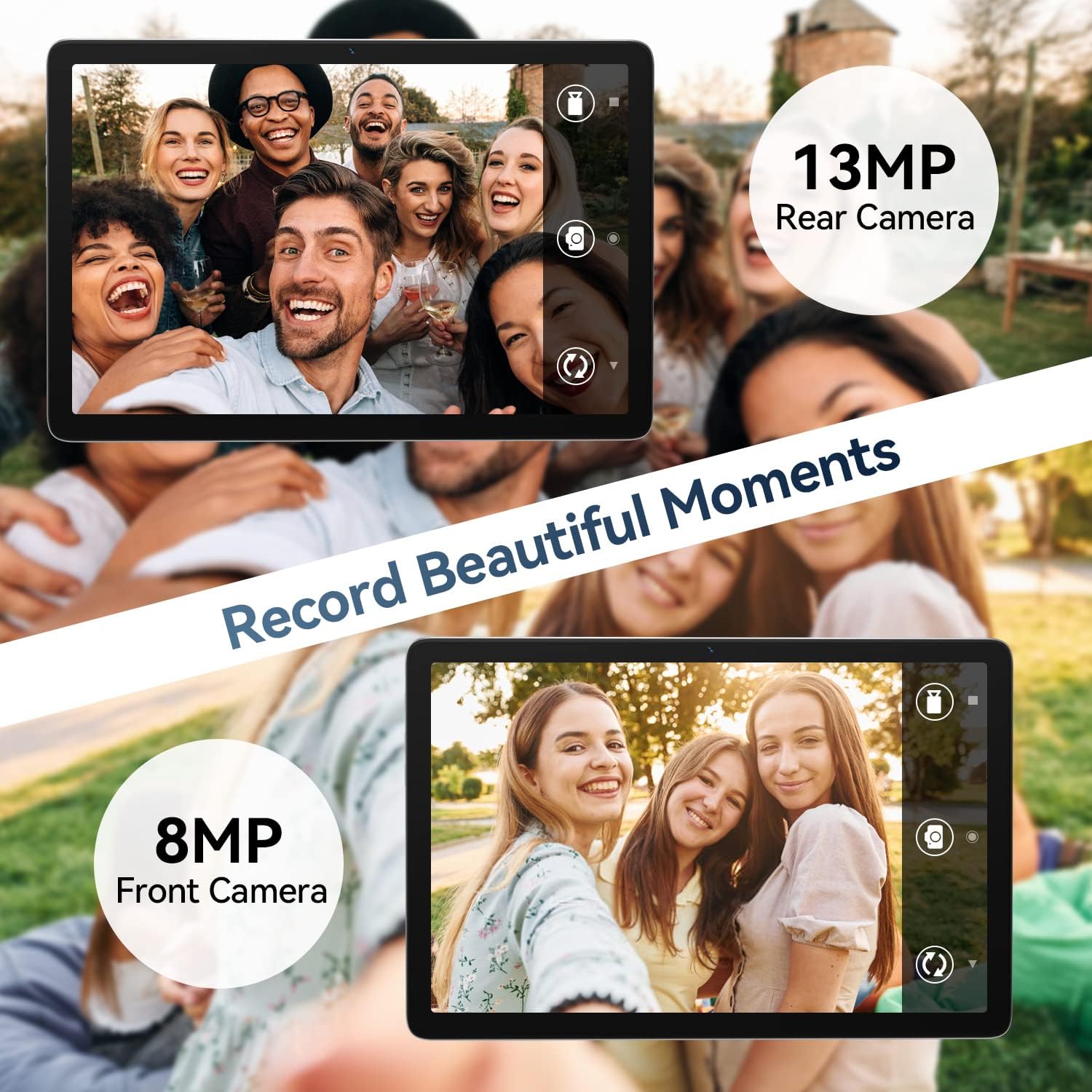 🎉【POWERFUL BUILT-IN SPEAKERS & CAMERA】Great tablet has built-in dual speakers that provide an unparalleled audio experience, bringing users a more powerful and balanced sound effect. Also built-in 13MP and 8MP dual front and rear cameras for daily use/online meeting/online video.