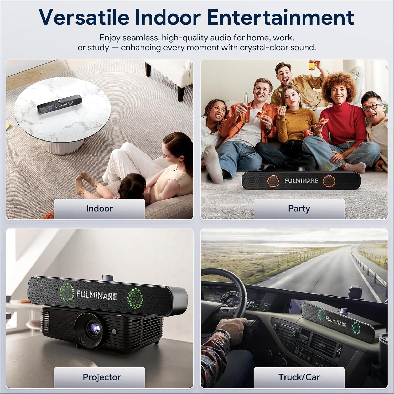 Versatile Usage for Any Occasion: The Bluetooth-compatible portable speaker is perfect for any setting. Use it at home in the living room, bedroom, or during small indoor parties to set the mood. It’s also great for office use, connecting to projectors for meetings. For on-the-go, enjoy it in your car with AUX support, adding music to your road trips.