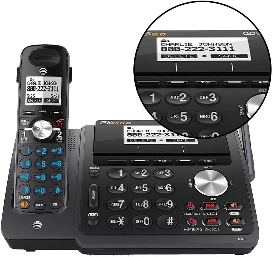 Be the first to review “AT&T TL88102BK DECT 6.0 2-Line Expandable Cordless Phone with Answering System and Dual Caller ID/Call Waiting, 3 Handsets, Black”