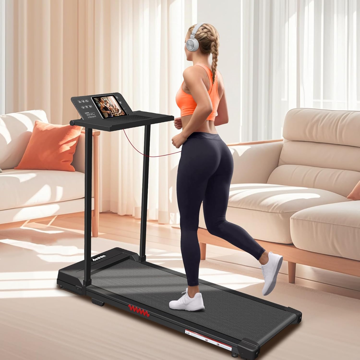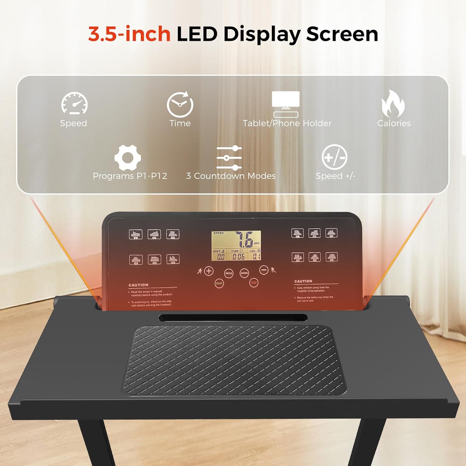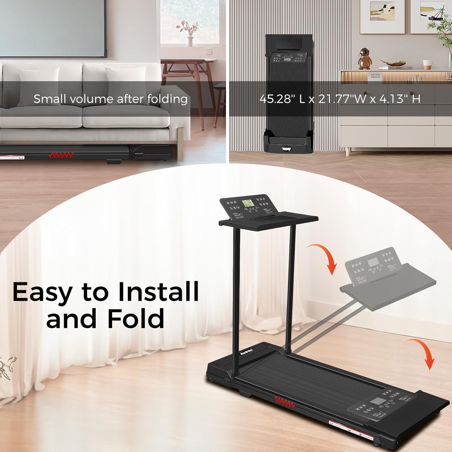 Foldable Treadmills for Home, 3.0HP Under Desk Treadmill, Folding Compact Small Running Treadmill with 12 Preset Programs LED Display, Desk Treadmill for Office with 320 LBS Capacity